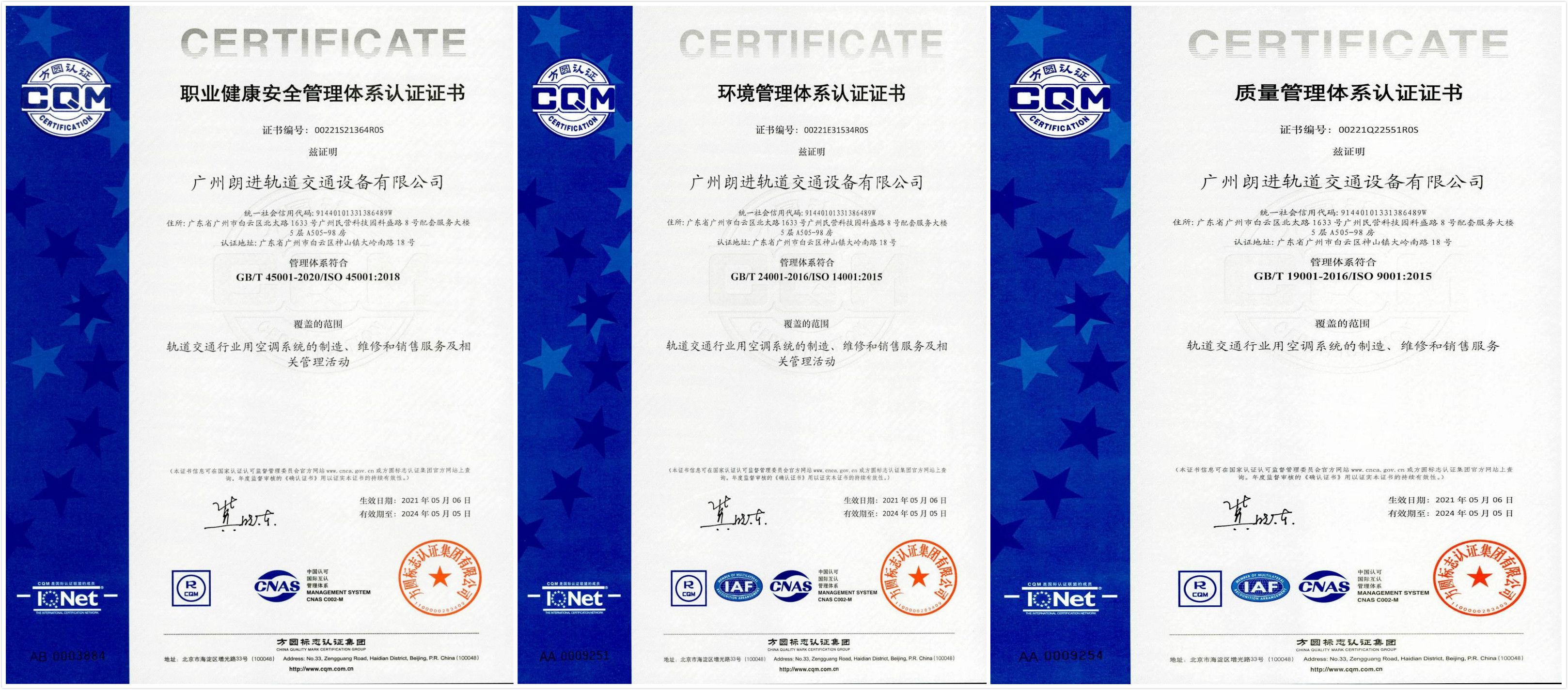 2021年5月,公司全資子公司廣州朗進(jìn)軌道交通設(shè)備有限公司(以下簡稱廣州朗進(jìn))順利通過ISO三大管理體系認(rèn)證,榮獲ISO9001質(zhì)量管理體系、ISO14001環(huán)境管理體系、ISO45001職業(yè)健康安全管理體系認(rèn)證證書,標(biāo)志著廣州公司的管理更加標(biāo)準(zhǔn)化、規(guī)范化,為廣州公司的持續(xù)健康發(fā)展奠定了堅(jiān)實(shí)的基礎(chǔ)。