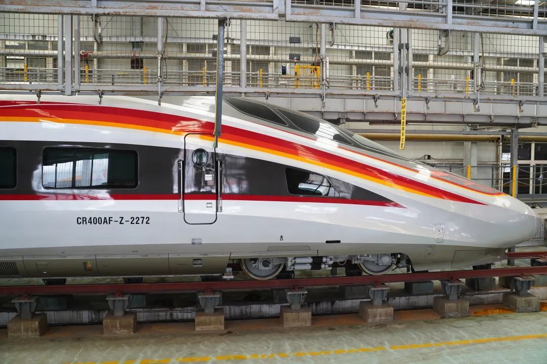 整車設計科技時尚。本次投入運營的CR400AF-Z型復興號智能動車組,采用標準的8節(jié)車廂編組形式,定員578人。車身外觀以“瑞龍智行”為主題,“復興號”三個金色大字蒼勁而醒目,紅橙黃三色的“飄帶”貫穿全車,整體給人飄逸靈動的感覺。復興號智能動車組在擁有華麗的外表同時,車內(nèi)更是“科技感”滿滿。全車空調(diào)采用智能溫度調(diào)節(jié)系統(tǒng),車內(nèi)溫度控制在最佳體感溫度;車廂頂部設置29寸寬屏電視,能夠左右分屏同時顯示列車運行和視頻節(jié)目信息;衛(wèi)生間智能識別,實現(xiàn)自動光亮調(diào)節(jié),并增加“禁止吸煙”語音提示。
