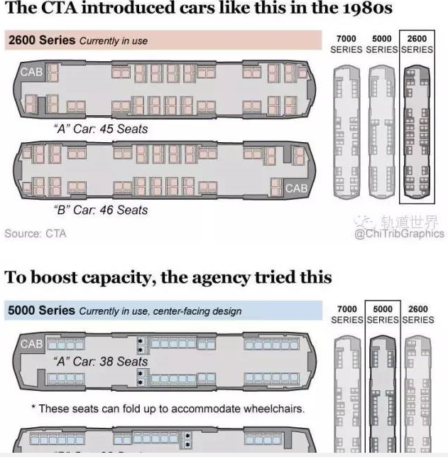 新地鐵車輛車長14.63m,時速達110km/h,還將配備LED照明,及現(xiàn)代化的乘客信息系統(tǒng)和交流牽引。不像5000系車輛,新的列車將有橫向和縱向的座位,其目的是在最大客流量時盡可能提高乘客的舒適度。該布置是經(jīng)征詢乘客建議后確定的,這也是CTA第一次就車輛座位布局采納乘客意見。7000系列車輛的交付將會使CTA車輛的平均車齡由2011年的26年降低到11年(部分外媒指13年)。CTA預測車輛保有現(xiàn)代化后,節(jié)能和降低的維護量將減少每年700萬美元的運維開支。