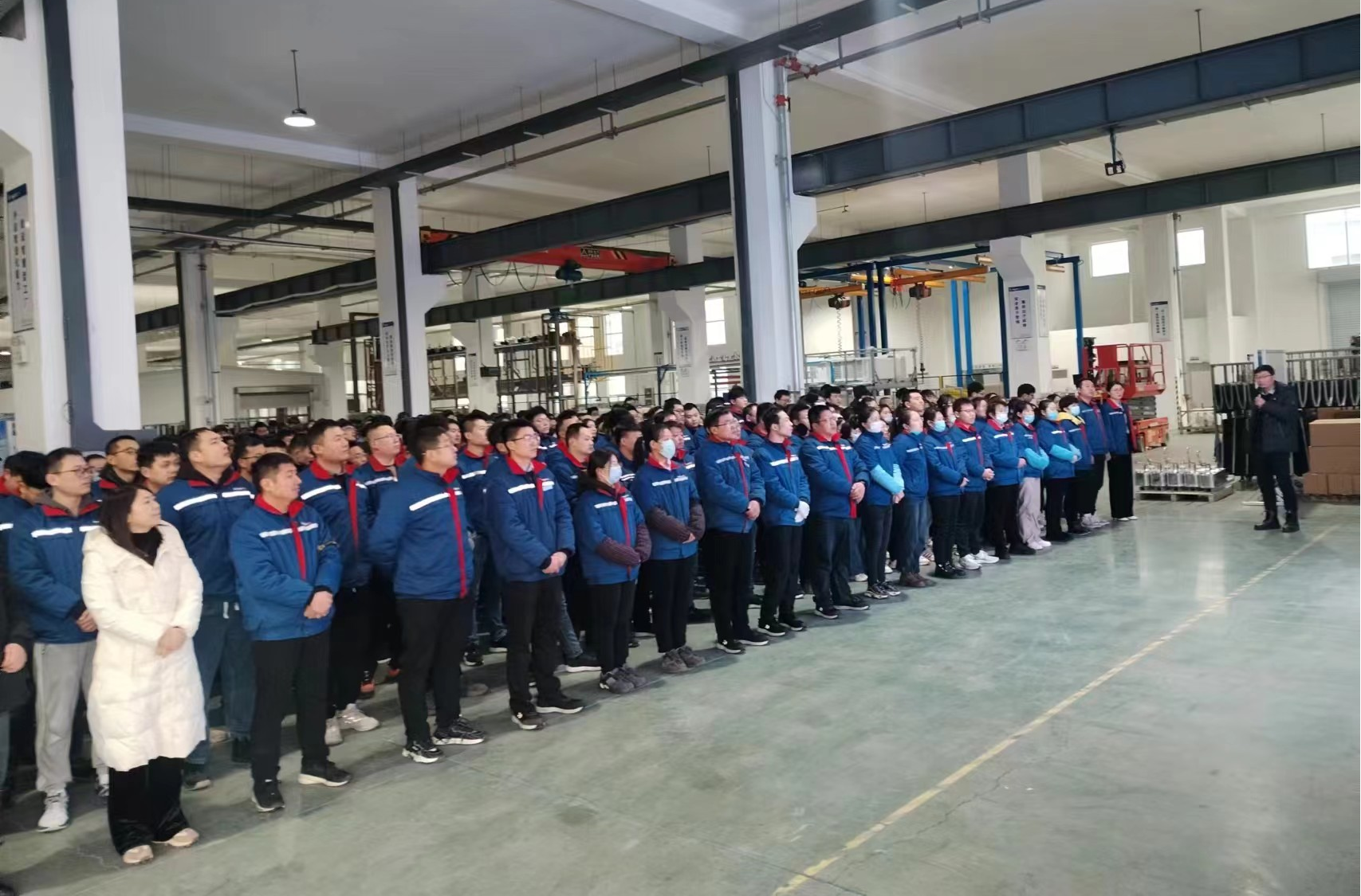 “開門紅”離不開“開門安”,安全生產(chǎn)必須先系好“安全帶”、再按下“加速鍵”!2月21日上午,為深入貫徹落實省委、省政府關(guān)于安全生產(chǎn)系列決策部署,扎實做好節(jié)后安全生產(chǎn)工作,進一步增強公司全體職工安全生產(chǎn)意識;結(jié)合濟南市安委會《關(guān)于扎實開展開工“第一課”活動加強復(fù)工復(fù)產(chǎn)安全防范工作的通知》文件精神,朗進科技在工業(yè)園6號車間多媒體屏幕前召開2024年安全生產(chǎn)“開工第一課”全員培訓(xùn)大會,集團安全總監(jiān)、萊蕪工業(yè)園總經(jīng)理岳小鶴進行授課,公司所屬各中心、部門全體人員參加。