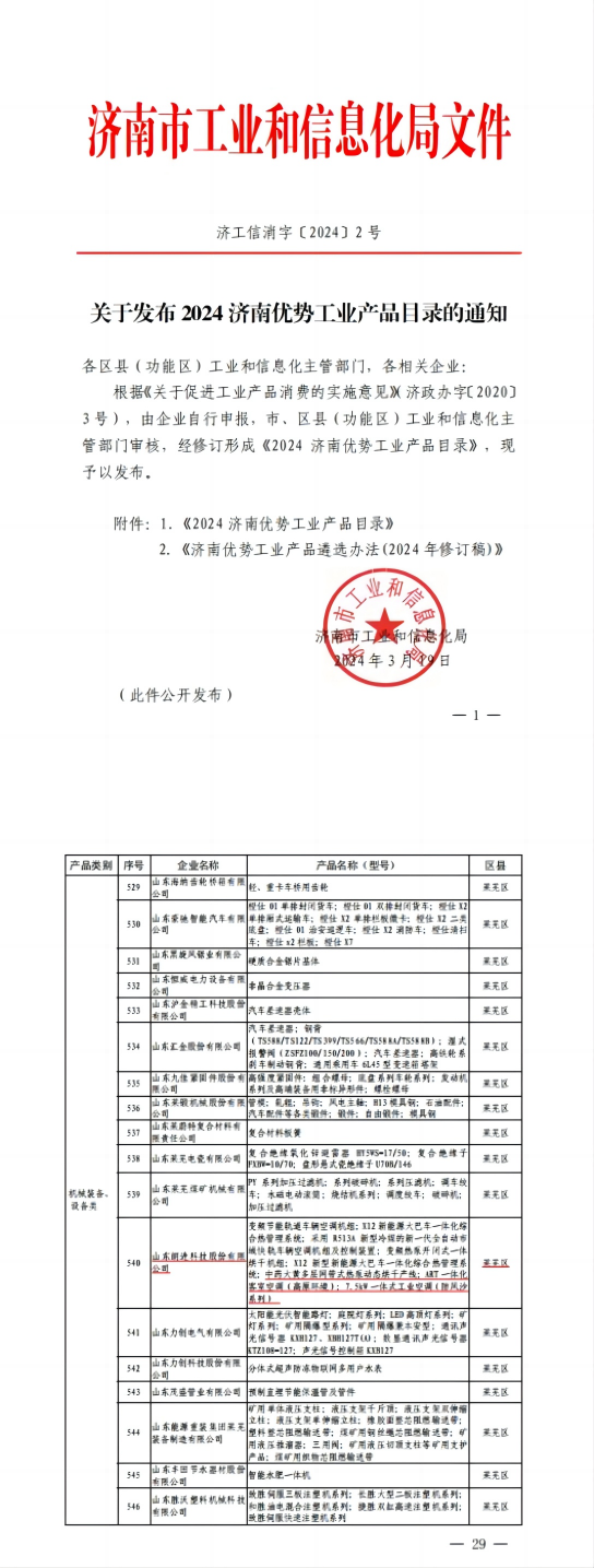根據(jù)濟南市工信局發(fā)布“2024年濟南市優(yōu)勢工業(yè)產品目錄”文件,朗進科技三個項目列入2024濟南優(yōu)勢工業(yè)產品。這一成就不僅彰顯了公司在工業(yè)領域的卓越實力,也進一步體現(xiàn)了我們不斷追求創(chuàng)新和卓越的精神。
