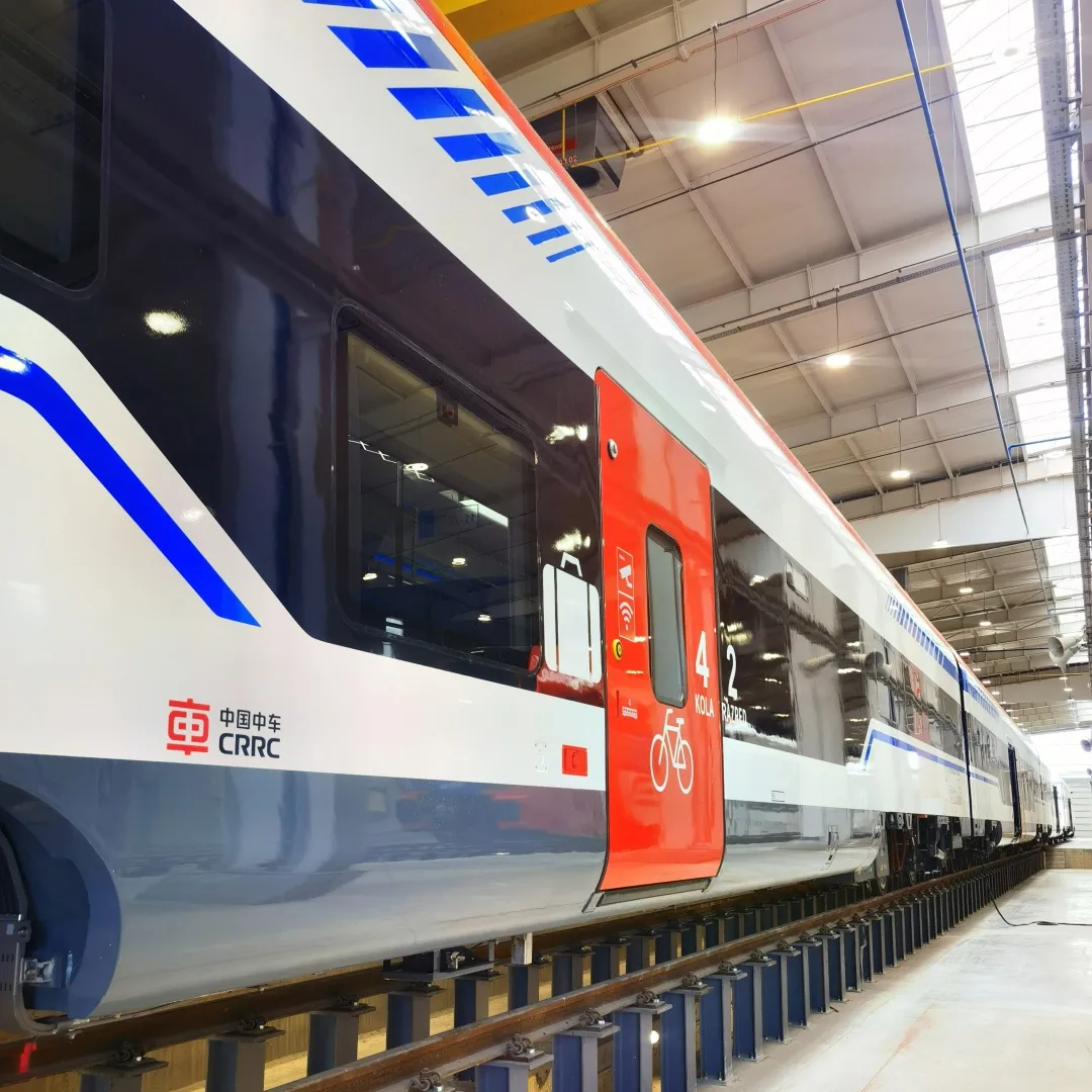 此次亮相的匈塞鐵路高速動(dòng)車組是國(guó)鐵集團(tuán)組織中車長(zhǎng)春軌道客車股份有限公司,根據(jù)中塞雙方鐵路部門達(dá)成的合作共識(shí),基于復(fù)興號(hào)中國(guó)標(biāo)準(zhǔn)動(dòng)車組先進(jìn)成熟技術(shù)平臺(tái),為匈塞鐵路量身定制,結(jié)合塞爾維亞當(dāng)?shù)剡\(yùn)行環(huán)境和線路條件,進(jìn)行了適應(yīng)性改進(jìn),滿足匈塞鐵路跨境運(yùn)輸需要,將于2025年底在匈塞鐵路投入使用。