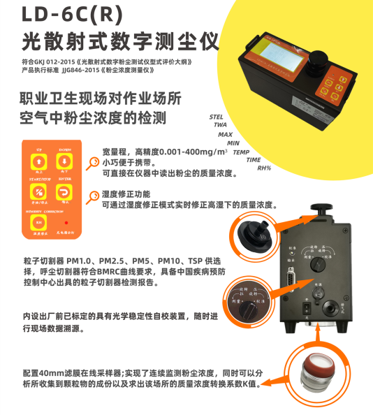 光散射法測定公共場所空氣中可吸入顆粒物濃度,具有快速、靈敏、穩定性好、體積小、重量清、無噪聲、操作簡便、安全可靠等優點。一方面該方法具有較高靈敏度而需要的樣品量少,并可省去或者簡化樣品處理步驟,因此采樣時間和分析時間均可大大縮短。另一方面,該方法無需樣品儲存,從而避免或減少了分析方法中的各種可能的誤差因素。