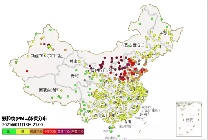 多個城市受沙塵影響出現空氣質量指數“爆表”。1月10日中午前后起,受多股冷空氣及其帶來的大風影響,我國內蒙古西部、甘肅河西、寧夏等地出現沙塵天氣。在較強西北氣流作用下,攜帶高濃度沙塵的氣團向東南方向移動,先后影響到陜西、山西、京津冀及周邊地區和長三角地區北部。截至1月13日21時,全國337個地級及以上城市中,40個城市PM10日均濃度達中度及以上污染水平,蒙甘陜寧交界地區7個城市空氣質量指數日均值“爆表”,PM10小時濃度在12日晚間至13日早晨一度超過2000微克/立方米;以榆林為例,污染峰值時段顆粒物鈣離子等沙塵示蹤組分濃度較沙塵天氣之前升高20多倍。13日下午至夜間,太行山沿線城市普遍出現短時PM10重度或嚴重污染;北京市PM10濃度從12時的104微克/立方米快速上升至17時的353微克/立方米,達短時重度污染水平。