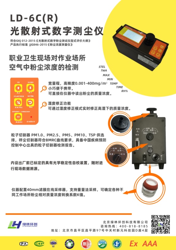 2020年最新推出防爆式數(shù)字測塵儀-LD-6C(R),主要用于職業(yè)衛(wèi)生現(xiàn)場對作業(yè)場所空氣中粉塵濃度的檢測。符合GKJ012-2015《光散射式數(shù)字粉塵測試儀型式評價大綱》產(chǎn)品執(zhí)行標準JJG846-2015《粉塵濃度測量儀》。可送至具有CMA資質(zhì)的國家級檢測單位出具校準證書。