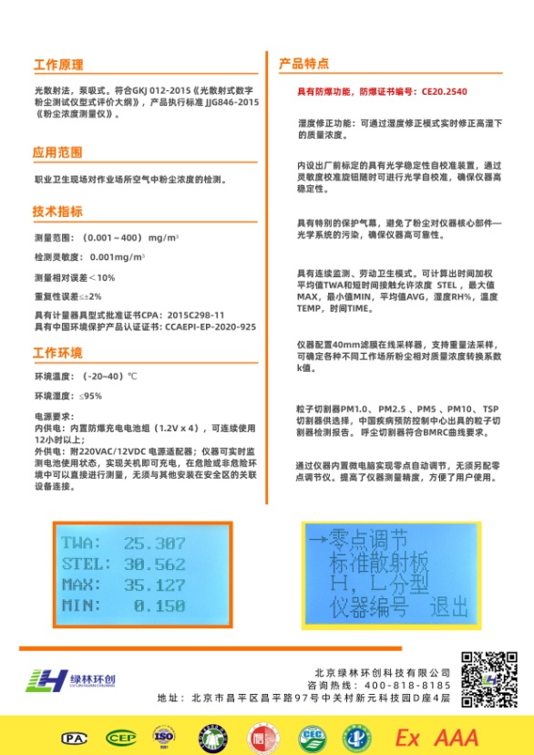 北京綠林環(huán)創(chuàng)科技有限公司是一家取得了北京市質(zhì)量技術(shù)監(jiān)督局頒發(fā)的“中華人民共和國計量器具型式批準證書”和“中華人民共和國制造計量器具許可證”的行業(yè)資深的老牌粉塵儀生產(chǎn)廠家,將竭誠為您提供最專業(yè)的解答。如有任何問題,可撥打400-818-8185進行咨詢。